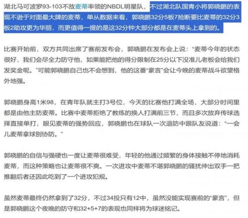 根据当年报道,郭晓鹏在几乎全程对位麦迪的情况下,拿到32分5板7断,而麦迪在这场比赛中拿到了32分3板2助。