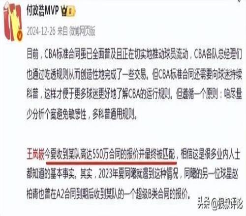 根据CBA官方公布最新的注册信息,广东男篮正式与崔永熙完成4年B类合同签约,他新赛季将改穿24号球衣征战致敬偶像科比。 作为一个已经正式登上过NBA常规赛舞台的中国球员,新赛季广东男篮只有胡明轩一名顶薪情况下,崔永熙团队为何签下B类4年合同? 首先要普及的CBA规则当中,什么是B类合同 CBA的B类合同又称为保护合同,是球员生涯的第二份合同,B类合同可签署的年限最长为5年,最短为1年。球队与球员签订B类合同时,提供的年薪不得低于该球员A类合同最后一年年薪的两倍。B类合同的理论最高年薪为球队D类顶薪合同减去50万元,如某球队顶薪为600万,则B类合同最高年薪为550万;若球队顶薪为400万,则B类最高年薪为350万。 B类合同可以设置激励条款,触发激励条款后,球队给球员发放当赛季合同工资50%-100%的奖金,这笔奖金不计入工资帽。 激励条件为常规赛出场场次达到80%以上(含本数)、场均出场时间21分钟(含)以上以及代表参赛的俱乐部进入季后赛。 按照广东男篮只有一名顶薪球员,且胡明轩在队内扮演绝对老大哥的角色,顶薪也极大概率是600万合同,那么崔永熙这一份C类合同最高可以达到550万的年薪。 像王岚嵚那种,超级毒药B类合同,年薪可以达到550万,仅次于D类顶薪的600万合同。 根据前CBA球员孟铎社媒透露过广东男篮赢球奖金方案。 主场是 20 万元,客场则是 30 万元。 这主场的 20 万元,在获得这笔奖金之后,会由全队共同进行分配,划分成一等、二等、三等。依据这场比赛的发挥情况以及表现情形,由教练给你打分。倘若一场球有 20 万元的话,核心球员大致能够拿到 4 万到 5 万元。” 季后赛则是可能翻倍,若是按照这个标准,崔永熙大概率锁定广东核心锋线的标准,那么每一场比赛的赢球奖金方面,在联赛期间超过合同的数字恐也不意外。 4年之后,胡明轩也进入到年龄超过30岁老将,徐杰同样进入到职业生涯中后期,对于焦泊乔,崔永熙两人冲击广东男篮D类顶薪合同,只要没有太大的伤病困扰,或者是其他情况,基本上就是谈判的必要条件了。 |