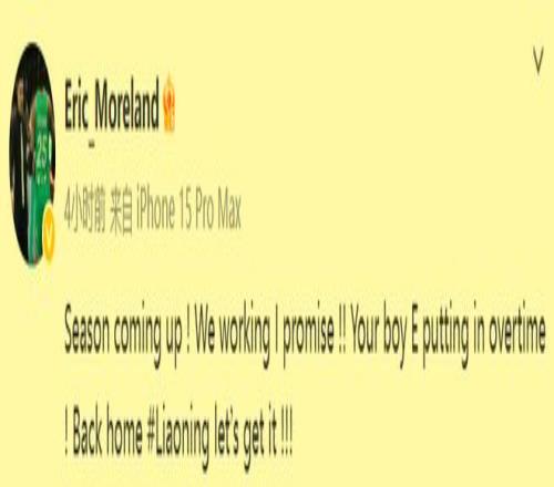 莫兰德上午9点自宣即将启程回辽篮!承诺再冲冠,杨鸣更有信心了
