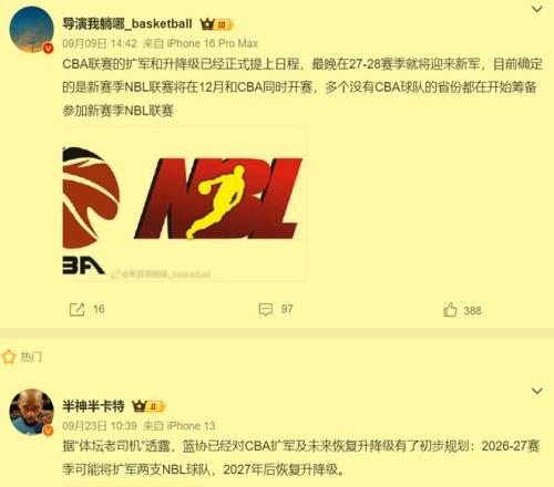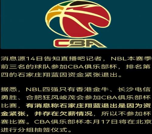 大写的尴尬!CBA欲扩军和恢复升降级!但已有NBL球队退出俱乐部杯