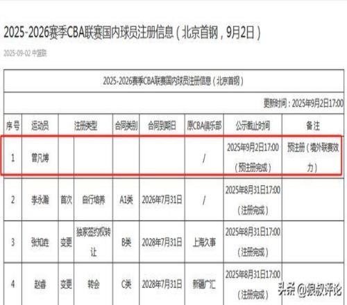 北京男篮已预注册!曾凡博回归CBA携手周琦赵睿雷蒙组建国手阵容