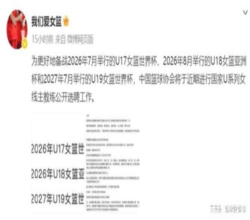 中国篮协这一次终于开窍了,根据知情人士透露,为了更好的备战接下来的U17世青赛、U18亚青赛以及U19世青赛,中国篮协已经正式宣布,在接下来他们将公开招聘这三大赛事女篮主教练,只要有实力的人,都可以通过竞争上岗。这对于中国女篮的发展而言,确实是一大利好。不过,对于女篮现任主教练宫鲁鸣而言,却是倍感压力。