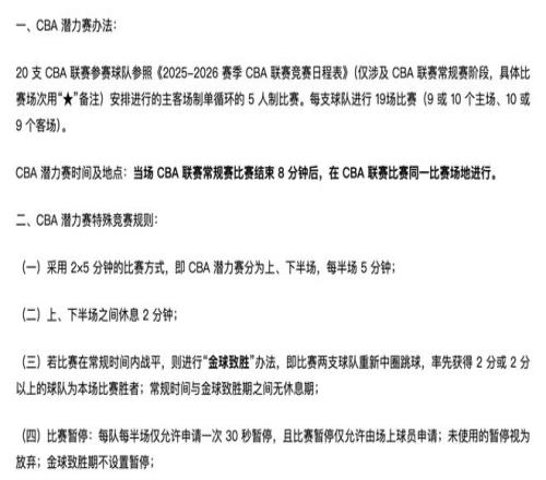 北京时间11月17日,据相关报道称,新赛季CBA将出台新规。在CBA比赛结束8分钟后同一场地举办CBA潜力赛,参赛球员是非首发比赛的本土球员,外援禁止参赛。 根据官方文件披露,CBA潜力赛采用2×5分钟的比赛方式,上下半场各5分钟,中间休息2分钟。若常规时间战平,比赛将进入激动人心的 “金球致胜”环节——双方重新中圈跳球,率先获得2分或2分以上的球队获胜 潜力赛的核心在于“潜力”二字。规则明确规定,参赛球员必须是在2025-2026赛季CBA联赛完成注册的国内球员(含港澳台球员),且仅限非首发球员参加,外籍球员被严格排除在潜力赛之外。为确保比赛公平,规则还包含一项特殊条款:各队可最多增加2名非当场比赛报名的国内球员参加潜力赛,但这一规则只有在客队选择使用额外参赛球员时,主队才能使用。 潜力赛并非表演赛,其成绩将直接关系到球队的常规赛排名。根据官方文件,当两队或多队积分相同时,潜力赛的成绩将作为排名的重要依据。 具体来说,如果两队常规赛积分相同,先比较相互战绩;若仍然持平,则比较两队潜力赛的积分,积分高者排名靠前。这一设计让潜力赛不再是无关紧要的附加赛,而是真正融入CBA竞赛体系的重要组成部分,确保球队和球员都会认真对待每一分钟的比赛。 CBA推出潜力赛并非偶然。新赛季,CBA常规赛已从每节12分钟缩减为10分钟,比赛总时间从48分钟减少到40分钟。这一变化虽然是为了让国内球员更好适应国际比赛节奏,但客观上减少了球员的总出场时间。潜力赛的引入,正好弥补了国内球员,特别是替补球员比赛时间的减少,并积累他们的比赛经验。 对于这个新规,您怎么看? |