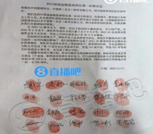 根据四川男篮球员、教练与工作人员一起签名和按手印的联名信显示,四川男篮全体成员均遭遇俱乐部的欠薪,且欠薪时长分别是3-9个月不等,还有部分奖金没有发放,并且他们的社保已经长达28个月没有缴纳。