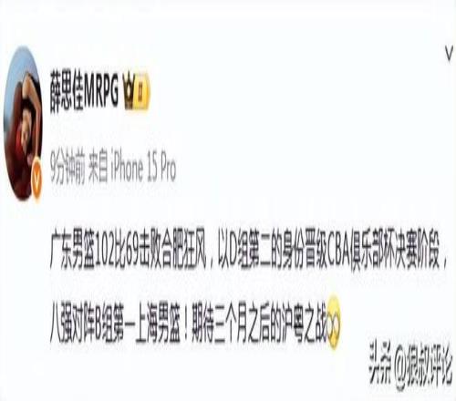 锁定CBA杯八强!广东男篮33分大胜合肥八强赛将战卫冕冠军