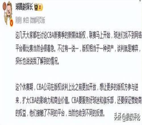 媒体人:CBA新赛季新媒体版权接近与一家头部网络平台达成一致