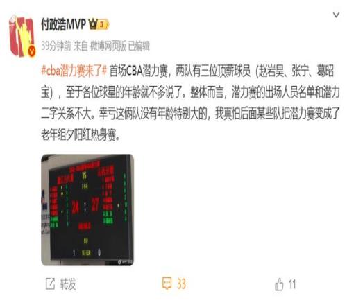 看看这两队场上的配置,还真不怪赛后球迷们在评论区都是一边倒的批评这场潜力赛:散步一样的节奏,可能还没队内训练赛激烈,真的有意义吗?葛昭宝打潜力赛,这你受得了?(平台)不直播是有先见之明的…… 大量球迷在批评和嘲讽,就连一向站在CBA这边的媒体人也有点绷不住,媒体人付政浩赛后更是给出了这样的辣评:首场CBA潜力赛,两队有三位顶薪球员(赵岩昊、张宁、葛昭宝),至于各位球星的年龄就不多说了。整体而言,潜力赛的出场人员名单和潜力二字关系不大。幸亏这俩队没有年龄特别大的,我真怕后面某些队把潜力赛变成了老年组夕阳红热身赛。