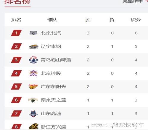 CBA积分榜最新排名出炉!北京掀翻辽宁登顶第1:广东第5山西第10
