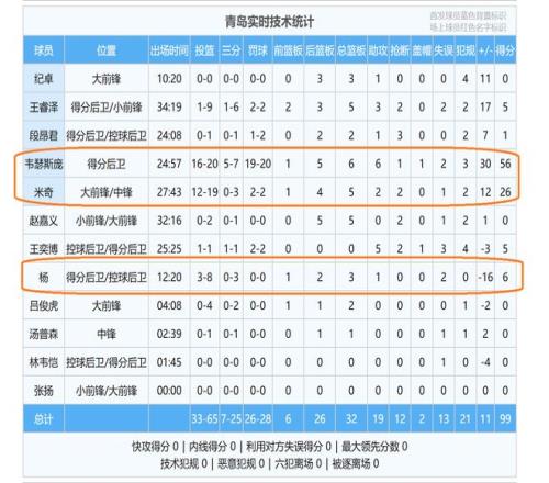 失望!青岛队全队一共得99分,然而,他们三个外援就得了88分,占比89%。本土球员一共才得了11分,占比为11%。看到这样的情况,很多球迷都是感慨万千,很难想象,CBA联赛呈现出这样的画面,有点丢人!有球迷就表示:CBA的比赛是培养外援,还是培养本土球员?