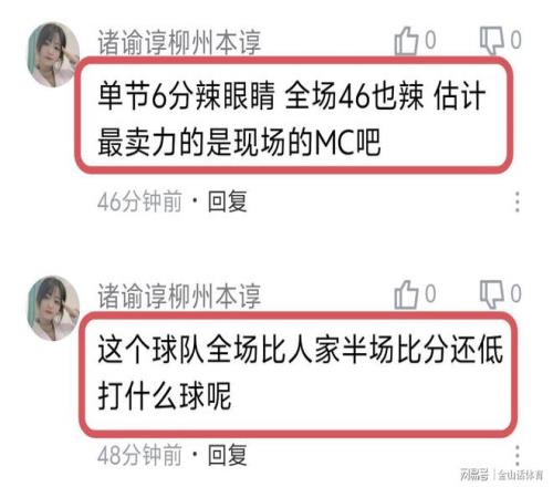 四川男篮开赛后糟糕的表现,以及本场比赛各种不忍卒读的数据,球迷们也是纷纷吐槽。“单节6分辣眼睛 全场46也辣 估计最卖力的是现场的MC吧”;“这个球队全场比人家半场比分还低 打什么球呢”;“这群混子赶紧找个班上吧,一场失准就算了,场场这样就是基本功问题了,菜还不多练”;“这种烂队在CBA干嘛,打下一级别联赛得了”;“四川要不还是去大学联赛打吧,能多得几分”;“脸都不要了”……