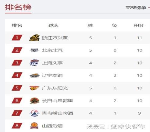 CBA积分榜最新排名出炉!广厦掀翻辽篮冲上第1:广东跌出前四