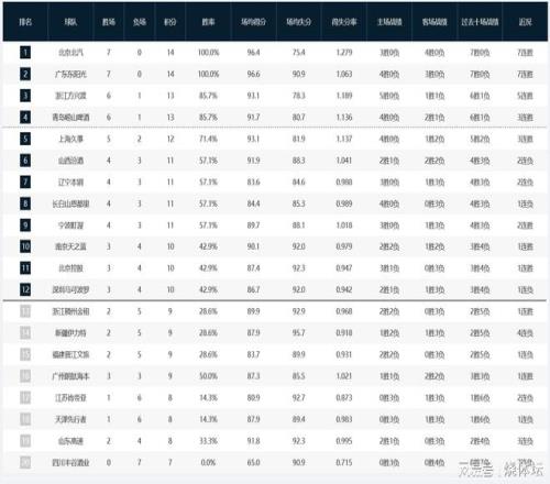 CBA排名榜:北京、广东双双7连胜,山东3连败+新疆4连败皆倒数