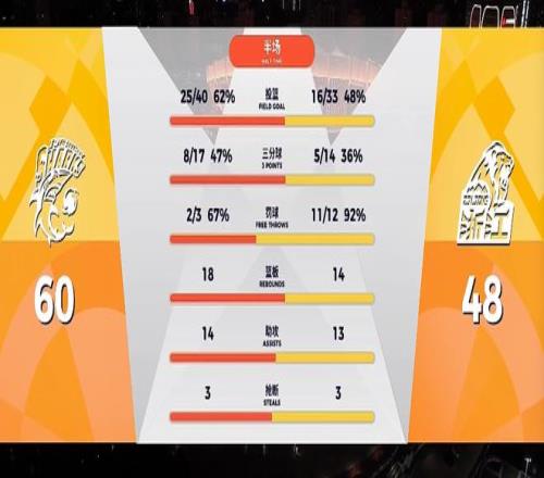 上半场最后时刻,刘铮和古德温接连命中三分!第二节结束,上海男篮以60-48领先对手12分进入更衣室。