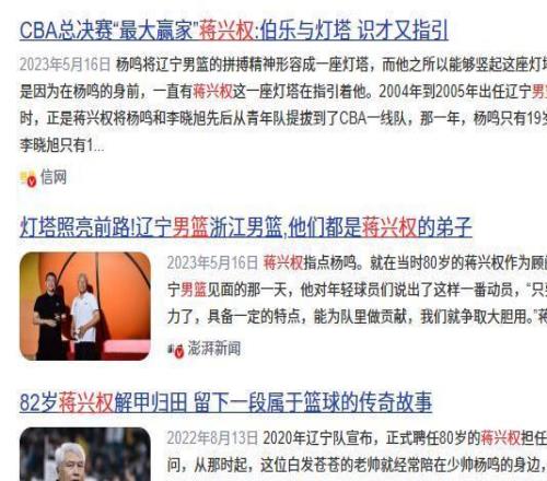 因为到后来,CBA里几乎一半的教练都跟他沾亲带故——李春江是他的弟子,郭士强、刘维伟是他的徒孙,杨鸣更是他一手提拔起来的关门弟子,真真正正的徒子徒孙遍布CBA。 2020年80岁的蒋兴权本打算彻底退休享清福,可刚出任辽篮主教练的杨鸣犯了难。 杨鸣之前从没带过青年队,直接接手要争冠的辽篮,压力大得喘不过气。