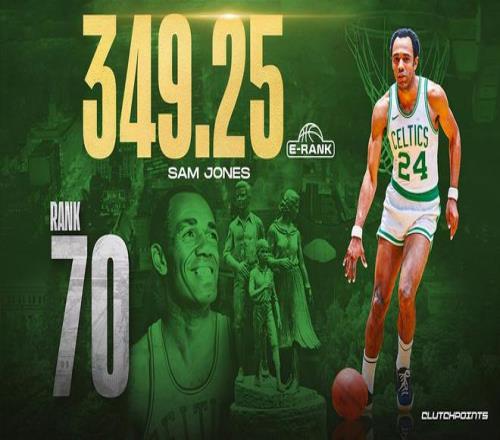 或许是榜单上最具争议的10人。一位拥有极高影响力指标、四次获奖却每年都饱受批评的中锋;一位季后赛零封的MVP;一位与总决赛MVP失之交臂的后起之秀。几位传奇球队的二线球员,以及一位入选75周年纪念球队并引发广泛讨论的球员。 读者朋友们,我想问一下:勒布朗·詹姆斯季后赛的成功挑战了许多关于个人成就的评价。有些人认为,赞扬他那些虽然没有拿到总冠军却在季后赛中取得的辉煌战绩,是在庆祝一座“参与奖杯”。另一些人则觉得这种想法很可笑,他们认为在季后赛中获胜总比在季后赛初期输球,或者干脆退役无缘季后赛要好。如果在你看来,赢得总冠军是10分,那么带领一支球队打进西部决赛或总决赛,却最终只差一点点就能拿到10分呢? E-Rank 洞察:E-Rank 会根据球员在季后赛和系列赛中取得的每一场胜利来评分。从球迷的角度来看,球迷最终会决定一名球员的伟大程度,因为他们会将球员的传奇传承下去。即使最终没有赢得总冠军,赢得胜利并给球迷带来更多希望也需要一定的分量。 70. 萨姆·琼斯 349.25(75周年纪念球队)