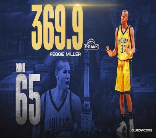 今天,利拉德是两位四届年度最佳防守球员中的第一位。与丹尼斯·罗德曼一样,本·华莱士也是一位得分能力几乎毫无价值的球员,但他凭借在防守和篮板方面的卓越贡献,成就了自己名人堂般的职业生涯。从落选秀到名人堂,他的投篮命中率确实截然不同。 65. 雷吉·米勒 369.9(75周年纪念球队)