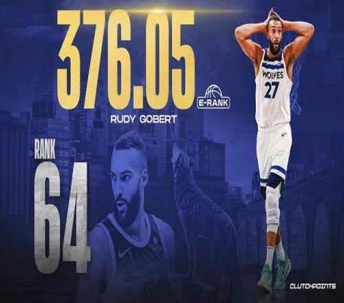 我认为,在重述雷吉·米勒的职业生涯时,人们忽略了他真正的统治力,尽管他的打法堪称先锋。他的季后赛生涯传奇迭起,那些时刻永垂不朽,但也经历了无数的磨难。人们都知道他是三分球的传奇,但他曾15次在真实命中率排名中位列前十。有充分的理由表明,历史上没有哪个球员的出手数应该比他更多。 64. 鲁迪·戈贝尔 376.05
