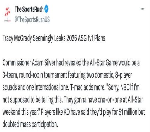 麦迪曝全明星会举办单挑赛!杜兰特愿参加先交钱才能参赛夺奖