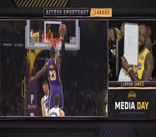 詹姆斯虽然从未参加扣篮大赛,但他无疑也是NBA顶级扣将,生涯有太多精彩隔扣。如今詹姆斯在新赛季媒体日接受Spectrum SportsNet采访,他给自己2019-20赛季隔扣别利察打10分,2021-22赛季隔扣好友乐福打9分,而2023-24赛季隔扣乔治打100分(夸张说法)。