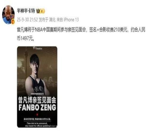 刚拿到NBA合同就陷圈钱争议!曾凡博中国赛见面签名收费高