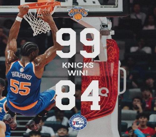 讲讲NBA季前赛,首战尼克斯99-84击败没有乔治&恩比德的费城。