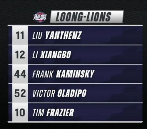 本场比赛,广州龙狮首发阵容是:卡明斯基、奥拉迪波、弗雷泽、李祥波和刘颜城。