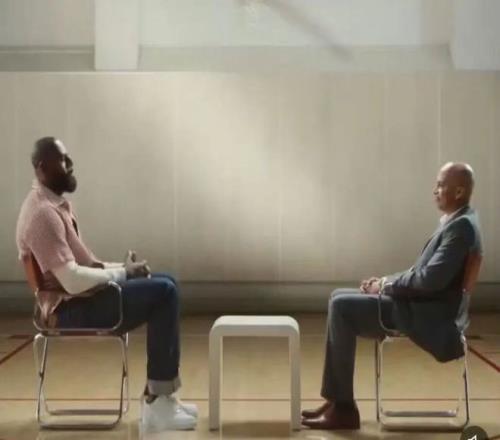 《营销说》论调的依据是,六月份的时候 詹姆斯就配合亚马逊拍过一条采访式广告 广告中,也以他被问到退役时刻作为噱头 视频里老詹的回应戛然而止,等待着续集