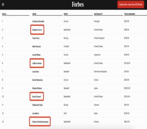 据福布斯的测算,在2025年全球运动员收入榜单中,字母哥总收入1.025亿美元,排在第13位。在篮球运动员中,他高居第四,仅次于库里、詹姆斯、杜兰特。 在篮球领域的前四名中,只有字母哥一人身处真正的小球市。这让他一度成为了体育商业领域的一个“异常值”。