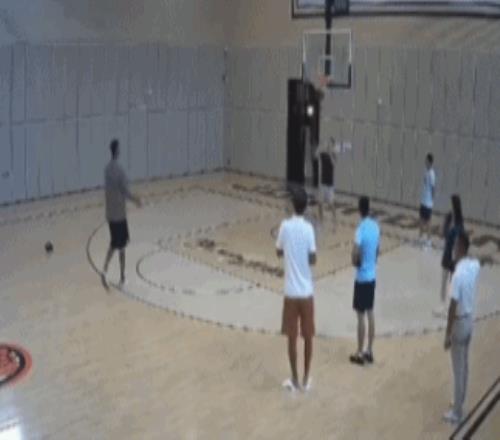 易建联除了满足女粉丝的签名合影之外,易建联也在训练球馆连续命中三分颇为抢镜。