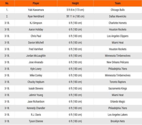 媒体盘点现役NBA最矮球员:河村勇辉居首,多位名将在列