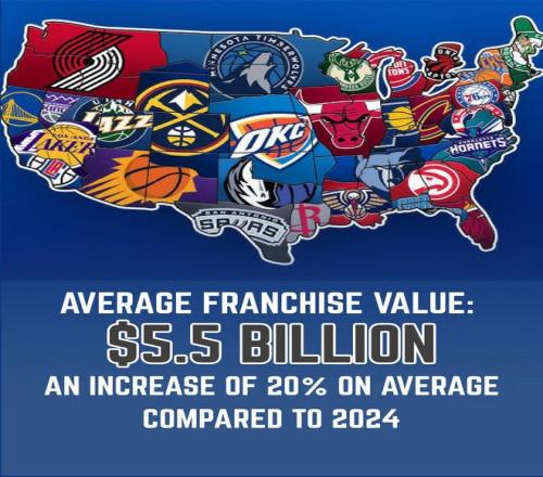美媒发布NBA球队估值排行榜:勇士113.3亿美元高居第一