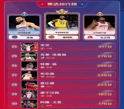 实至名归!NBA新赛季30大球星雷速人气王勒布朗詹姆斯