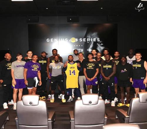 湖人官方社交账号发布了活动照片,詹姆斯和威少的表情确实截然不同。 第二天,湖人在官方社交账号上发布了分享会的照片。威尔·史密斯站在湖人球员、教练和佩林卡中间,手举着一件特别定制的球衣,詹姆斯在身旁笑脸相迎,而在他们右侧不远处,威少站在那里,面无表情,甚至可以说有些愤怒。 就在The Ringer摘录了韦茨曼书中的这段故事之后,美国媒体和球迷就在社交网络上再次开始讨论两者的关系。如今,詹姆斯和威少似乎都还处在各自的舆论风波之中,而这段猛料的发布,无疑会让他们在下个赛季的球场重逢,变得更加令人期待和关注。 |