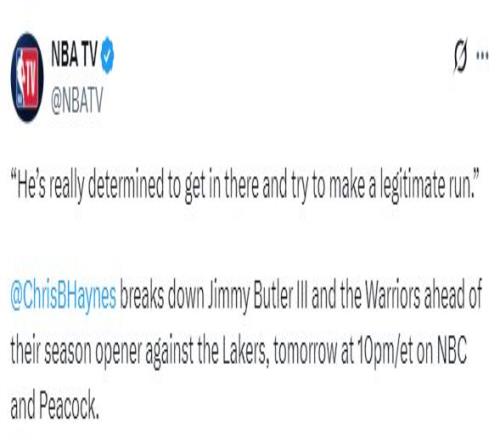 北京时间10月21日,NBA新赛季揭幕战一触即发,库里和巴特勒已经带队飞往洛杉矶,名记Chris Haynes报道,巴特勒对新赛季下了很大的决心,他要全力以赴带队争夺总冠军。 谈到巴特勒,名记Chris Haynes在节目中表示:库里仍然保持着高水平的竞技状态。我和一位与巴特勒关系非常密切的人聊过,他说巴特勒对待这个休赛期的态度,就像他即将进入新秀赛季一样,他确实下了很大决心,要全力以赴带领这支勇士冲击总冠军;还有追梦格林,我依然认为他是联盟中最顶尖的防守球员之一,我知道这无法完全通过盖帽或抢断数据体现,但他在身体对抗上确实做到了。 Haynes继续说道:只要他们能保持健康就有机会争冠,不过我好奇的一点是库明加的融入情况,他们应该让他进入状态,他们会允许他承担更重要的角色吗?这是接下来要看的比赛。如果库里、波杰姆斯基和巴特勒都能出战时,你看看这个预计的轮换阵容,当库里和巴特勒同时在场时,他们赢下了很多比赛。 上赛季,库里和巴特勒带领勇士今年晋级季后赛,首轮4-3黑七淘汰火箭,可第二轮库里意外受伤,最终他们被勇士4-1淘汰出局。 |