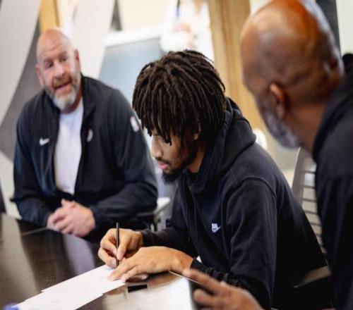 北京时间10月21日,波特兰开拓者官宣两笔续约,球队正式与夏普、卡马拉续约,开拓者总经理克罗宁发声盛赞他们;开拓者全队祝贺他们,比卢普斯透露卡马拉高兴得跳来跳去,直言为他们感到自豪。 今日开拓者官方晒出夏普、卡马拉正式与球队续约的画面,他们与总经理握手并且签下续约合同,开心之情溢于言表。 据悉,夏普与开拓者提前续签4年9000万美元新合同,卡马拉则是签下一份4年价值8200万美元的提前续约合同,两人总共签下4年1.72亿美元,他们都在续约方面做出了一定的让步。 谈到夏普续约,开拓者GM克罗宁表示:夏普是NBA最具潜力的年轻球员之一。他拥有出色的得分能力、组织天赋以及卓越的团队意识,我们坚信他将在未来多年成为开拓者队不可或缺的闪耀力量。 谈到卡马拉续约,克罗宁表示:图马尼(卡马拉)在短时间内已证明自己是NBA最出色的防守者之一,防守是我们建队基石,而他以其坚韧、多面性和竞争精神成为核心力量,他完美诠释了撕裂之城的精神内核。 卡马拉在今天接受采访时,比卢普斯特地跑过来打趣:“展示一下你那八千万美元的微笑,别藏着了!” |
