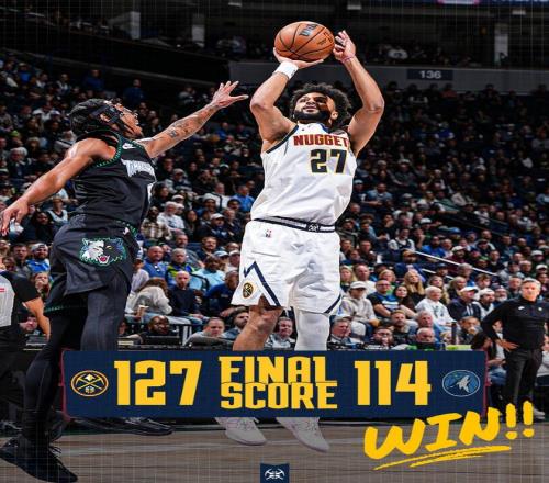 末节决战,森林狼连续冲击篮下,并一度将分差缩小至3分。但是约基奇、穆雷联手得分,稳住了局面。沃特森外线发难,还送出大帽,掘金重新取得15分领先,得以锁定胜局。明尼苏达远投命中率下滑,追分乏力,比赛逐渐失去了悬念。最终,掘金以127比114完胜对手,就此斩获2连胜。 两队数据 森林狼队, 麦克丹尼尔斯16中10砍下了25分3板1助4帽,在攻防两端发力。兰德尔15中8得到了24分7板3助2断、里德12中7贡献18分7板2助、迪文岑佐12分3板4助、康利10分3板4助、香农9分3板1助、戈贝尔7中3得到了8分5板1助2帽、海兰德4分2板1助、迪林厄姆4分2助。