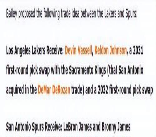 这笔交易的背后理由不难理解,马刺功勋主帅波波维奇和詹姆斯一向私交甚好,而对于这支年轻球队,比赛经验丰富的詹姆斯正是最懂得怎么带领年轻球队的导师人选;甚至是文班亚马,现阶段需要的,可能正是这样一位既能传授经验、又能提升球队层级的更衣室角色。 幻想之外,美媒Bleacher Report甚至连交易计划都提前布局好了: “湖人送出詹姆斯+布朗尼,换到瓦塞尔、凯尔登·约翰逊,外加两个未来首轮互换权。”