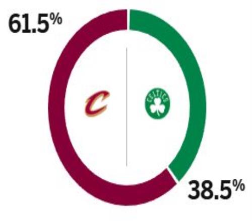 ESPN预测骑凯大战胜率:骑士61.5%,凯尔特人38.5%