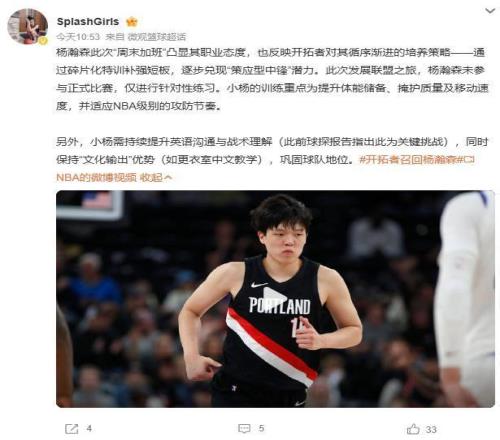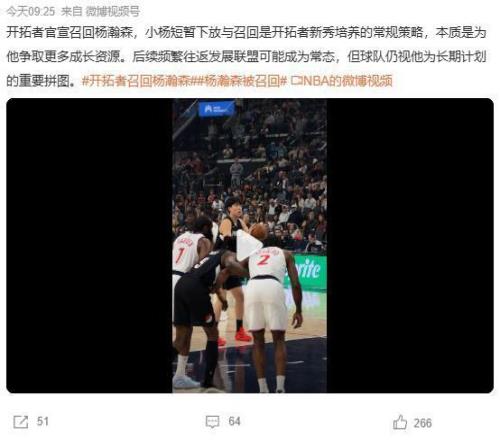 他们既希望通过发展联盟帮助杨瀚森保持竞技状态,又不愿让他在高强度比赛中过度消耗,更期待他能循序渐进地完成过渡。 至于未来能否走出“升降机”模式,主动权依然掌握在他自己手中。 倘若始终无法实现能力跃升,即便此次因对阵湖人被临时征召,下一次面临类似情况时,依旧难逃再度下放的命运。NBA从来不缺少天赋,真正稀缺的是能够兑现潜力并持续进化的球员。 [免责声明]文章描述过程、图片都来源于网络,此文章旨在倡导社会正能量,无低俗等不良引导。如涉及版权或者人物侵权问题,请及时联系我们,我们将第一时间删除内容!如有事件存疑部分,联系后即刻删除或作出更改 信源:1. 微博 2. 上观新闻