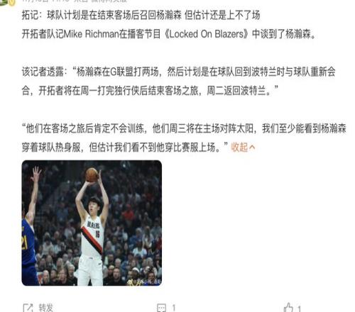 另外根据球队的记者透露,到12月份开拓者发展联盟球队将回到主场比赛,到时候杨瀚森应该会继续被下放。所以从目前球队的安排来看,杨瀚森的行程基本上就是被下放被召回,然后在主队和发展联盟球队这边两边折返跑,这其实也是很多NBA新秀的日常。因为不管是小杨还是其他NBA新秀,很多年轻球员其实即战力都不是特别的强,所以他们更多时候需要去NBA发展联盟进行练习,把自己在球队学习到的东西放到场上去不断进行打磨。后面争取在发展联盟打出统治级别的数据之后,再回到NBA常规赛这边看看能不能够争取到一定的轮换时间。