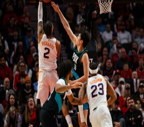 开拓者数据,阿夫迪亚19分5篮板5助攻,夏普29分3助攻,小乐福17分7篮板3助攻,克林根9分12篮板5盖帽,杨瀚森9分5篮板3助攻1盖帽,西索科8分3篮板5助攻2抢断。太阳数据,布克19分6篮板5助攻3抢断,布鲁克斯12分4助攻3抢断,马威15分6篮板,吉莱斯皮19分3篮板6助攻,伊戈达罗14分4篮板。