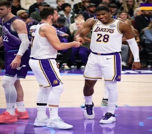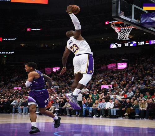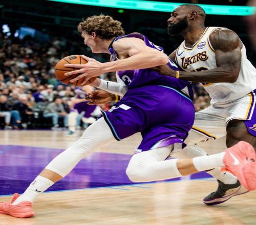 北京时间11月24日,NBA常规赛继续火热进行。湖人奔赴客场与爵士展开对决,该场比赛,是两队本赛季的第二次交手。首战14分大胜的紫金军团,握有心理优势。此役,湖人全员健康,雷迪克沿用了勒布朗詹姆斯、卢卡东契奇、里夫斯、艾顿、八村塁的首发阵容。凯斯勒赛季报销、尼昂伤停,盐湖城的首发五虎是马尔卡宁、努尔基奇、基昂特乔治、贝利与米哈伊柳克。詹姆斯与马尔卡宁的强力前锋对决,是此战的最大看点。 詹姆斯17+6+8创两大纪录,湖人4连胜升至西部第2!东契奇33+11+8创NBA历史第1神迹! 全场比赛回顾 首节开打,詹姆斯抢断后抛投不进,米哈伊柳克外线打铁,詹姆斯暴扣。乔治、马尔卡宁相继抛投得分,詹姆斯、艾顿连续冲击篮下未能得分,里夫斯连投带罚得到3分,米哈伊柳克上篮得手,东契奇命中2+1还以颜色。米哈伊柳克外线命中,詹姆斯助攻里夫斯上篮得分予以回应。努尔基奇补篮得手,东契奇抛投打进2球还以颜色。努尔基奇命中三分球,贝利暴扣,八村塁回敬远投。 东契奇与八村塁击掌