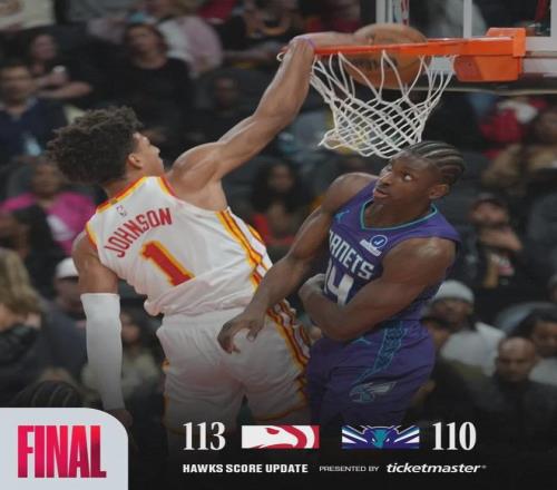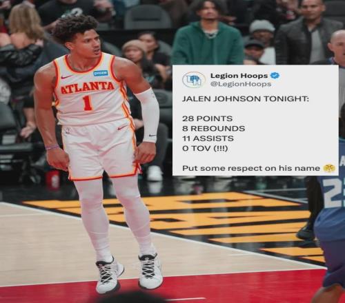 上一场对阵黄蜂,杰伦-约翰逊砍下28分8篮板11助攻0失误,这是老鹰队史首次有球员单场至少25分5篮板10助攻0失误。 23岁的杰伦-约翰逊也成为1999年以来单场至少拿到25分10助攻0失误最年轻的前锋球员。 赛季前16场比赛,他一共拿到358分154篮板112助攻,他也因此成为NBA历史上开季最快拿到至少350分150篮板100助攻的前锋球员。 是的,比勒布朗-詹姆斯都快。 杰伦-约翰逊正在接班勒布朗-詹姆斯成为全能前锋新的代言人,他是赛季至今唯一一位助攻数超过100次的前锋球员,他和约基奇也是助攻总数榜前十五仅有的两位非后卫球员。