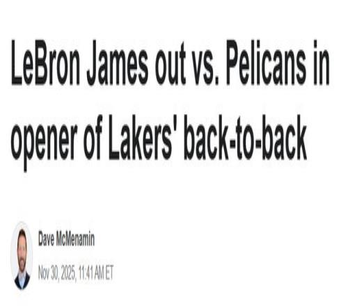 詹姆斯今日确定缺战鹈鹕!本赛季已缺阵15场:再休3场将无缘评奖