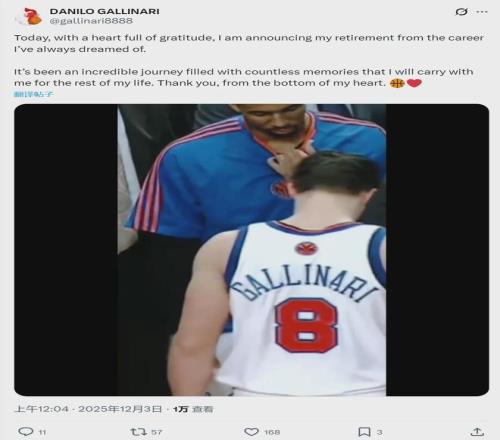 北京时间12月3日凌晨,“意大利炮”达尼罗-加里纳利宣布正式退役,结束21年篮球生涯:“今天,我怀着无比感恩的心情宣布,从我一直以来梦寐以求的职业中退役。这是一段不可思议的旅程,充满了无数美好的回忆,我会永远珍藏。”