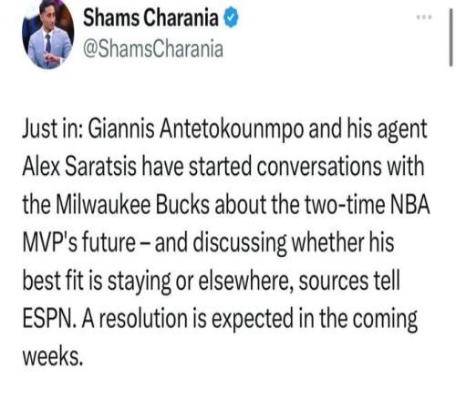 本赛季至今,雄鹿仅取得10胜13负排名东部第十,字母哥对此深感失望沮丧,申请交易几乎已成定局,将与球队讨论未来,接下来几周内得出最终决定。