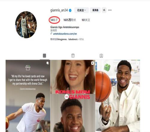 NBA名记Haynes透露了他与字母哥的一段对话,这位两届常规赛MVP表示,当自己面前出现阻碍时,他希望“冲破阻碍,解决问题”。至于社交媒体内容的清理,Haynes指出,字母哥早在“三四周前”就删除了大量内容,其中除了雄鹿相关帖子外,还包括不少亲友照片。 字母哥提到了迈克尔-B-乔丹(美国男演员)今年早些时候的一段采访,乔丹在采访中引用了丹泽尔-华盛顿给过他的关于职业生涯与个人形象管理的建议。乔丹转述华盛顿的话称:“如果大家一整周都能免费看到你,那他们凭什么还要花钱在周末来看你?” 据Haynes报道,字母哥表示自己正是从这个角度重新考量后,决定清空社交媒体上的大部分内容。 目前字母哥的IG账号仅剩下14条帖子,其中前四条均为广告或商业合作内容。不过他仍保留了雄鹿2021年NBA总决赛夺冠以及上赛季赢得NBA杯的相关照片。