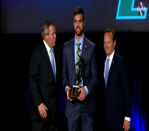 同时赢得年度最佳进攻球员和最佳新人的奖项 四年大学下来,他成为一级联盟历史上助攻次数最多的球员。 并且连续三年入选全美最佳阵容一队,四次赢得爱国者联盟MVP。 还拿到了象征大学棍网球最高荣誉的特瓦拉顿奖。