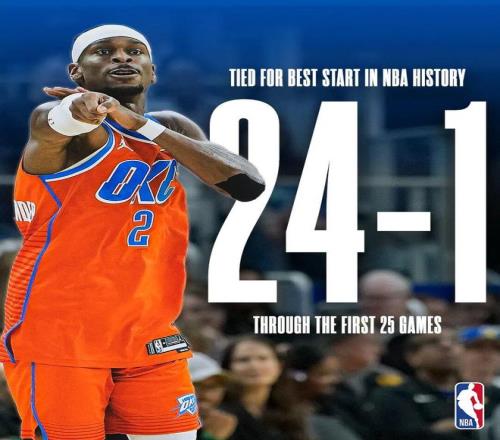 对于雷霆而言,这不仅仅是一场常规赛胜利: ——晋级NBA杯半决赛,每名球员多拿5万奖金 ——豪取16连胜,打破队史最长连胜纪录 ——开赛至今24胜1负,追平15-16赛季的勇士(开局24胜1负),NBA历史最佳 我们还记得,当16勇士开局24连胜时有多疯狂,当时觉得,可能再也看不到如此炸裂的开局了,如今这才10年过去,雷霆就追平了16勇士的纪录。 而且说实话,这赛季的雷霆,在统治力方面可能比16勇士乃至96公牛都要强。