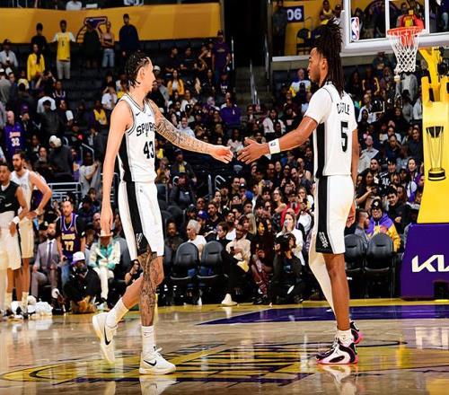 本场比赛中,马刺的先发得分后卫斯蒂芬-卡斯尔(Stephon Castle)打出了一场现象级的表现。卡斯尔全场出场26分34秒,投篮14中10,三分线外6中3,罚球9中7,得到了全队最高分30分外加10篮板6助攻的数据,还有4次失误和4次犯规,正负值也是达到了+16。卡斯尔在进攻端大杀四方,不仅冲击力极强,终结能力不俗,而且在外线投篮方面的稳定性也是相当不错的。湖人的防守非常糟糕,完全没有办法对他进行有效地限制,可以说是被他冲垮了。卡斯尔在传球和组织方面也是起到了不错的效果的,而且他在防守端也是能够起到很好的效果。卡斯尔算是将自己的特点完全发挥了出来,他的一系列不俗表现也是球队能够战胜实力不俗的对手的关键因素。
